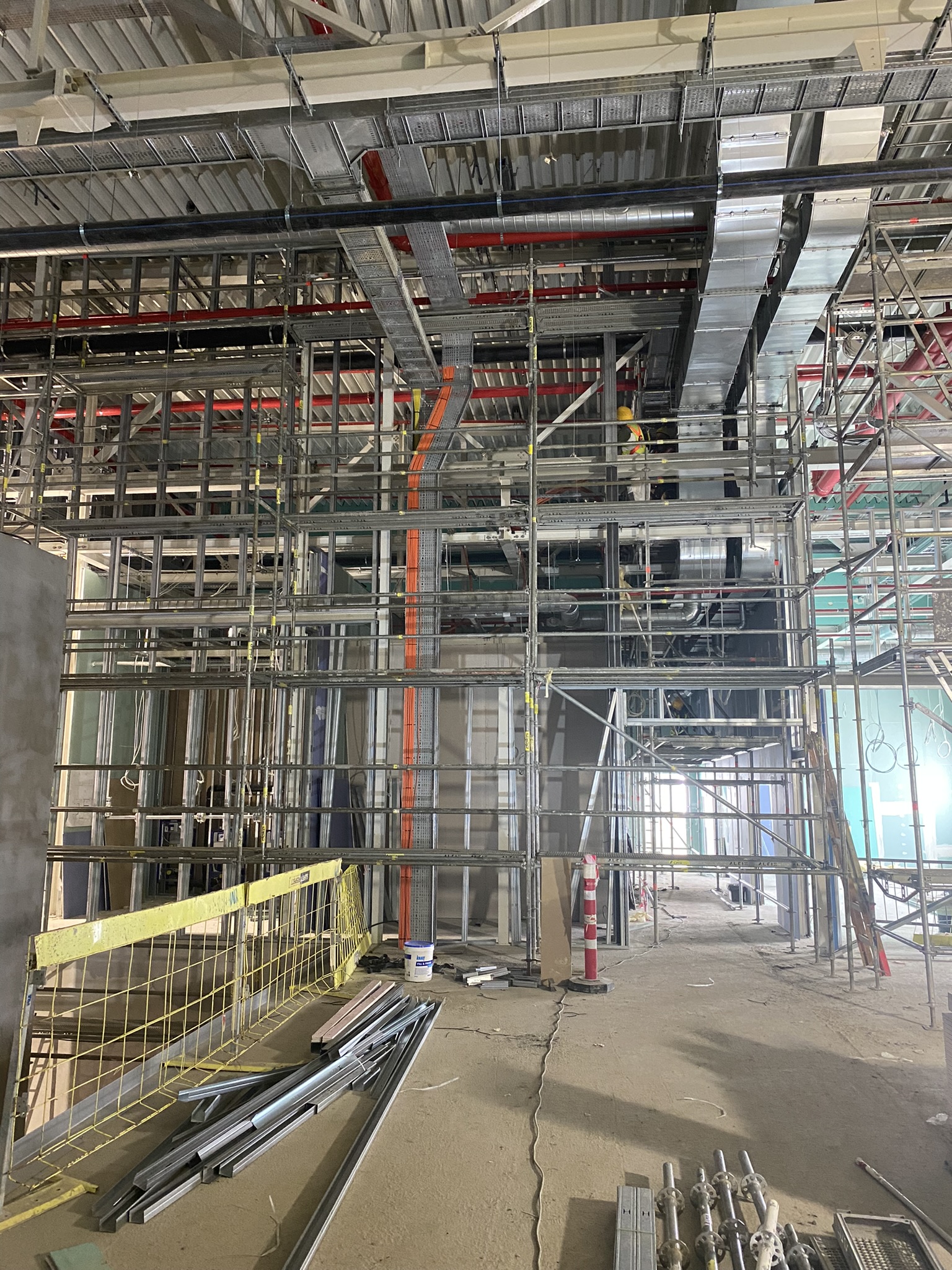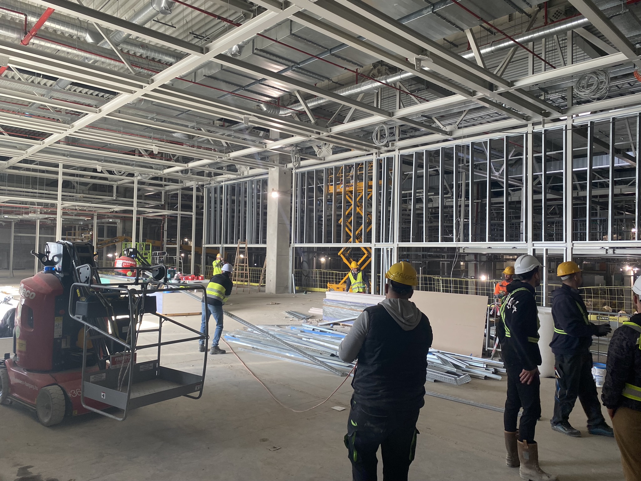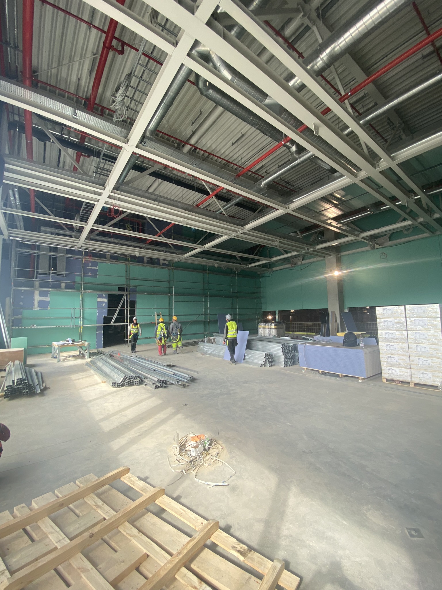 ✅ Plasterboarding, painting, gluing, suspended ceiling and ceiling tiles of the TU hall of BMW Factory Debrecen of the concrete base design, cold cladding.